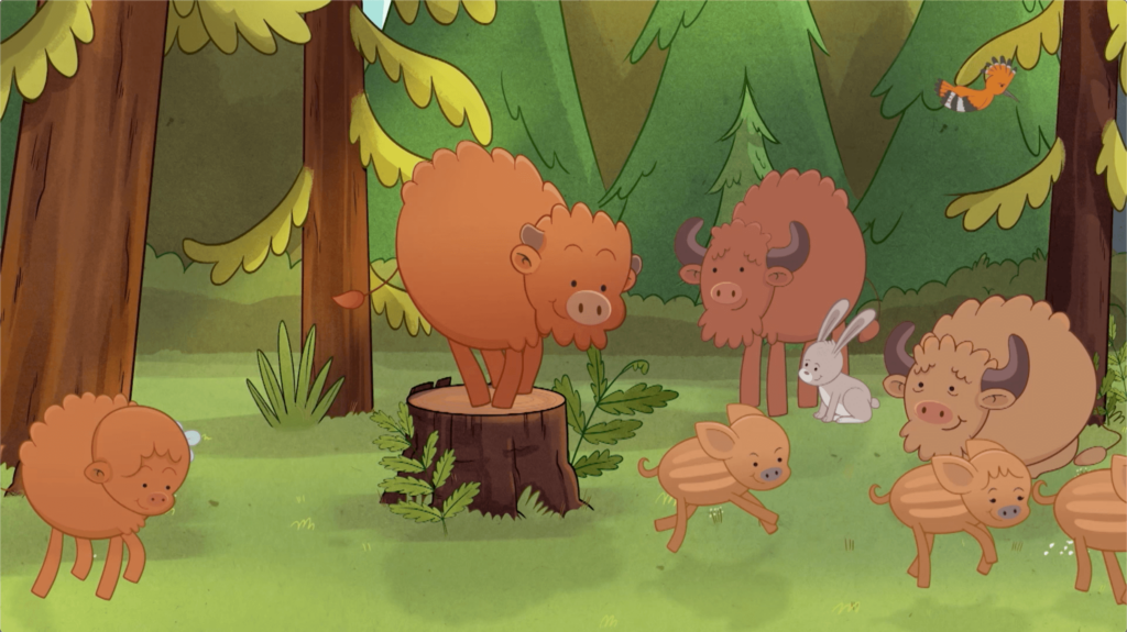 Mały żubr o imieniu Pompik i jego młodsza siostra Polinka mieszkają z mamą i tatą w wielkim zielonym lesie. Ponieważ są jeszcze maluchami, powoli uczą się rozumieć świat, który ich otacza.